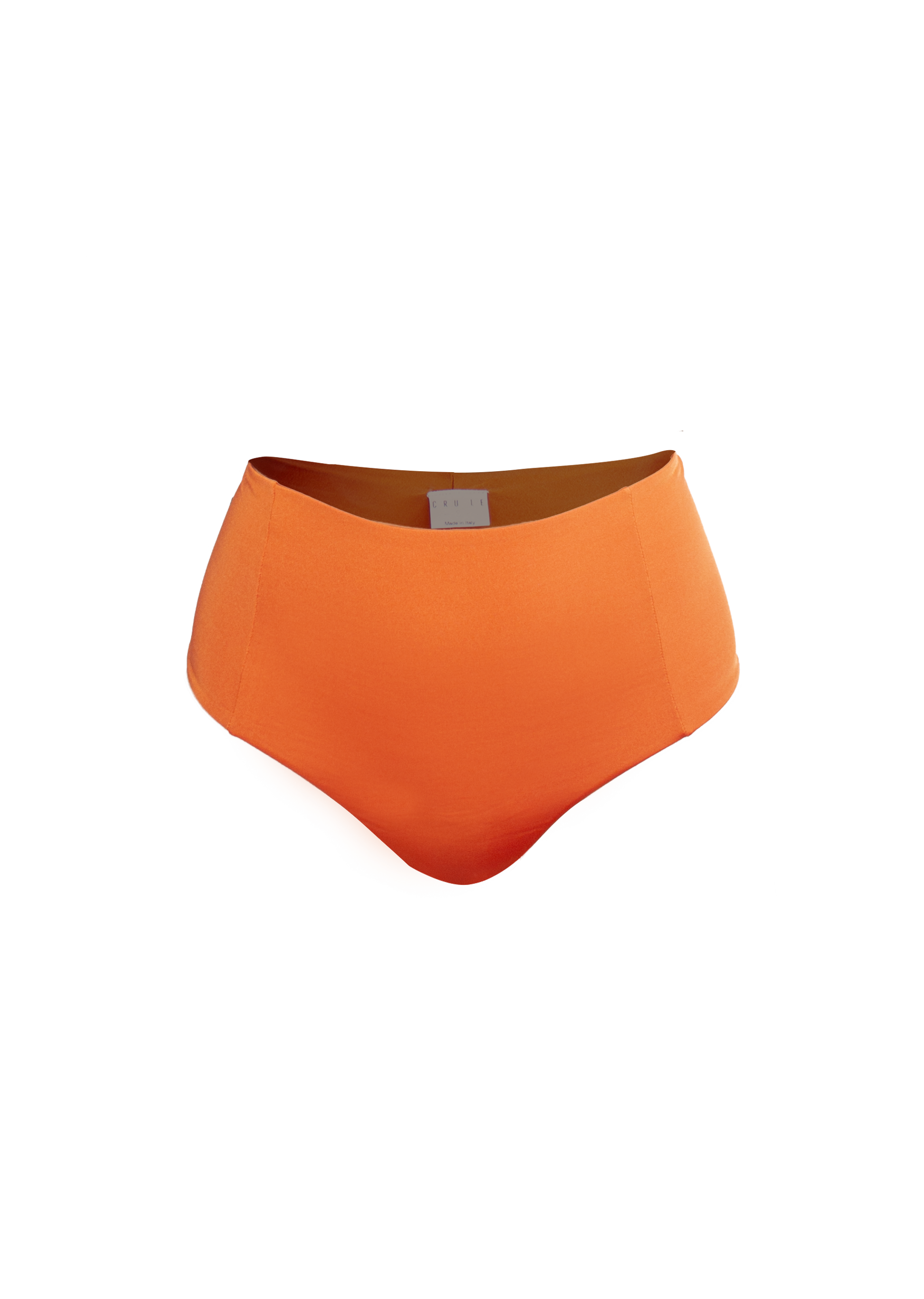 Slip per bikini a vita alta di ispirazione retrò. Il tessuto brillante in quattro varianti colore, realizzato in nylon riciclato ECONYL®️.
